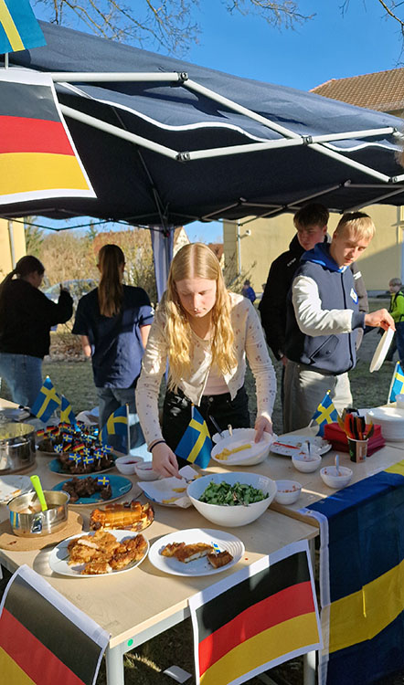 Am Donnerstag konnten unsere schwedischen Gäste erneut den Unterricht an unserer Schule besuchen und weitere Eindrücke sammeln. Nach dem Lunch folgte ein besonders praxisnaher Programmpunkt: das gemeinsame Kochen in der Schulküche. Unter der Anleitung von Herrn Krause wurden typisch schwedische Gerichte zubereitet – ein gelungener Beitrag zum interkulturellen Austausch, der bei allen Beteiligten großen Anklang fand. Den Abschluss bildeten eine gemeinsame Reflexionsrunde im Kompetenzraum sowie die Verabschiedung.