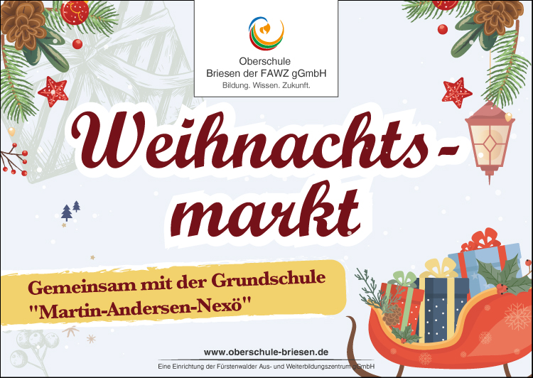 Voller Vorfreude erwarten wir unseren diesjährigen Weihnachtsmarkt. In beschaulicher Atmosphäre möchten wir uns gemeinsam mit unseren Schülerinnen und Schülern sowie Familien und Freunden auf die Weihnachtsfeiertage einstimmen und das Jahr gemütlich ausklingen lassen.